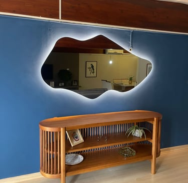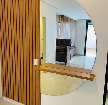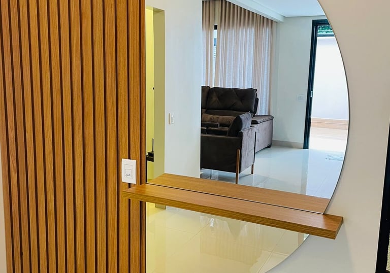 A linha premium de espelhos decorativos deu um toque especial à minha sala. Recomendo a todos da região!